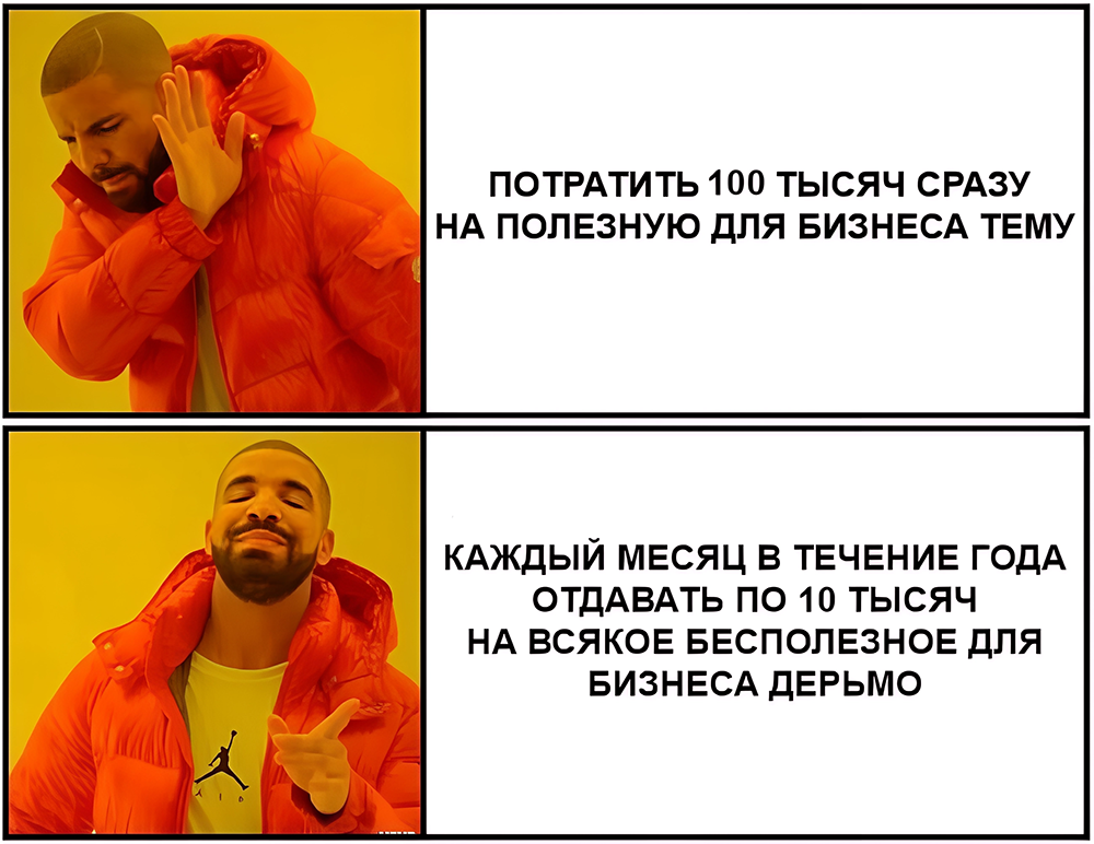 Впрочем, не думаю, что клиенты у прохиндеев после моего отзыва о Pressfeed исчезнут совсем. Не исчезнут. Просто из-за мышления среднестатистического российского предпринимателя, о котором я достаточно полно писал вот в этом посте. Предприниматель думает так: просрать десять раз по 10 тысяч рублей в течение года на всякую херню – это НЕ страшно! Сущее копье! Для бюджета вообще НЕ заметно! А вот разово ОСМЫСЛЕННО потратить условные 100 тысяч рублей разом на что-то реально ПОЛЕЗНОЕ для бизнеса и осмысленное – не, это страшно, это ссыкотно… Вот и у «НейроТехнолоджи», небось, именно так вышло. Почитали отзывы о Pressfeed, посмотрели на ценники и решили: ну потратим 43 тысячи, делов-то… Копейки! Если не выстрелит – да и не жалко…