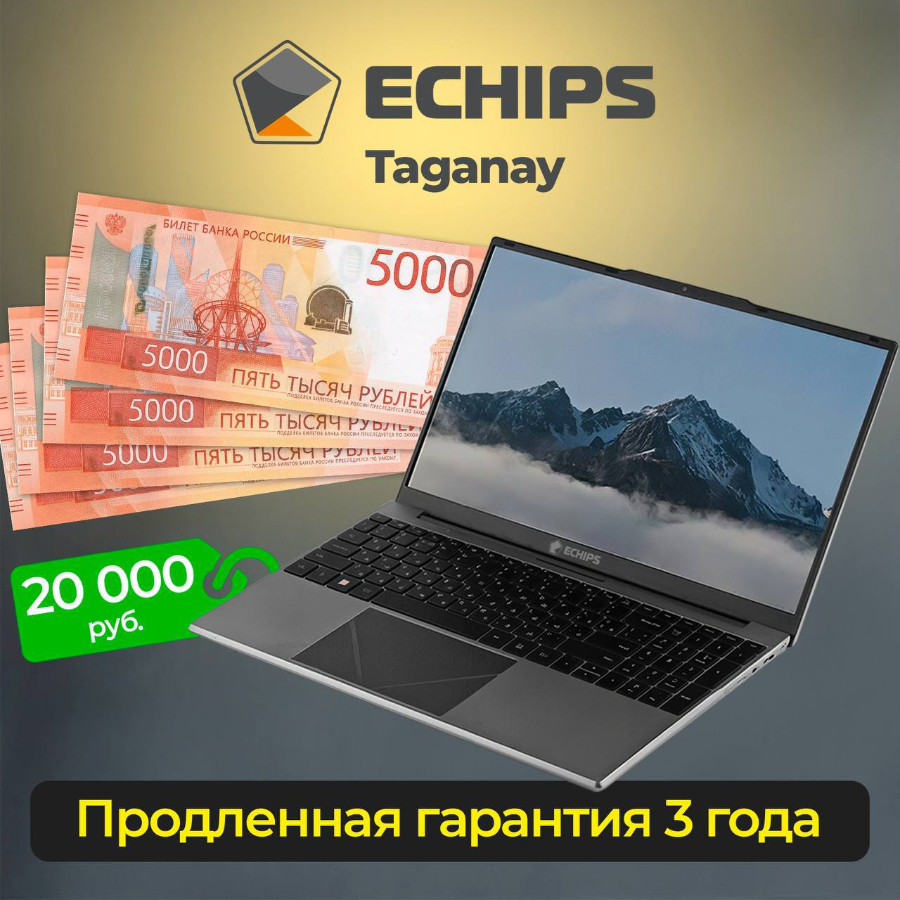 Однако вернемся к основной нити повествования. С тех пор принципиально ничего не поменялось, и нам необходимо было лишь чуть освежить эту самую легенду – добавив в нее новую сюжетную линию. Вот как раз о супер-предложении: ноутбук Echips Taganay всего за 20 тысяч рублей на Wildberries.