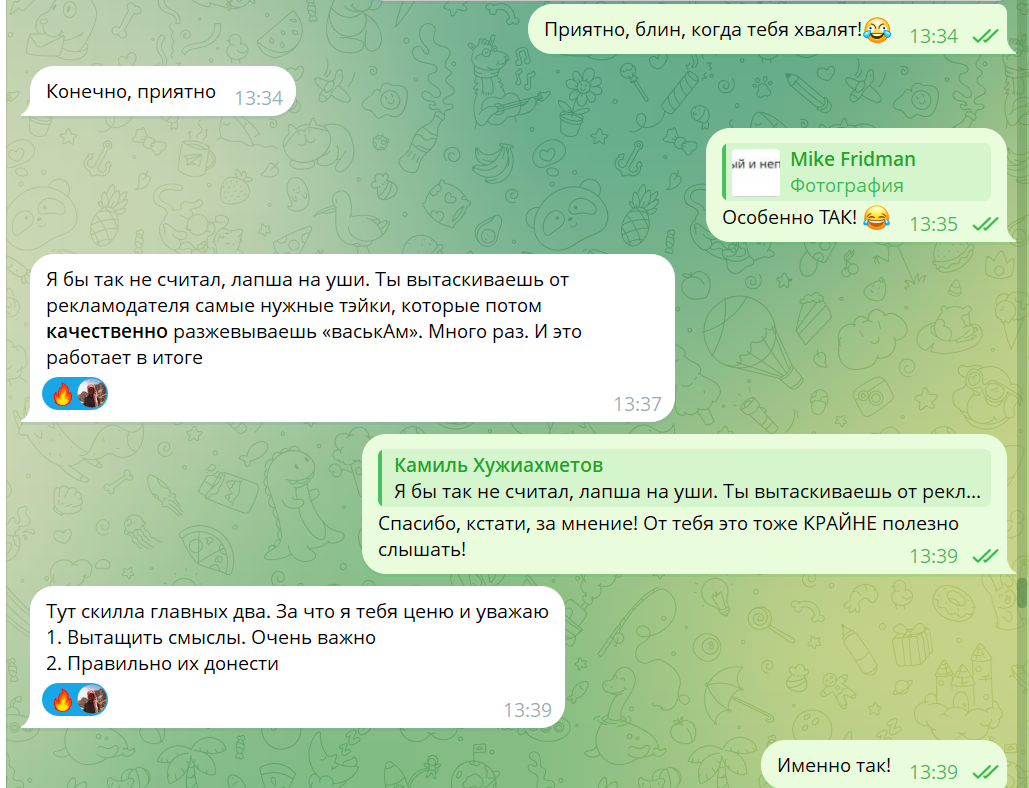 Обычно я не сильно удивляюсь, когда ко мне возвращаются ушедшие клиенты. За последние полгода таких историй было несколько – я даже посвятил этой теме пару постов в ТГ (раз и два). Но в случае с Камилем, признаться, был удивлен – ведь я хорошо помнил, КАК мы расставались. В конце 2024 года у нас был очередной созвон с командой Echips, и тогда найденная Камилем в бизнес-клубе консалтерша тоном строгой учительницы ставила на вид, что никто нынче так не работает и что ни в одном MBA не приемлют то, что мы, Фадеевское агентство, практикуем… Ни одной цифры консалтеша не назвала. Вместо она продемонстрировала полный расклад дешевейших бабских манипулятивных техник подчинения воли (про бабскую логику у меня есть отдельная матерая статья, почитайте). А Камиль молчал и позволял гурейшей гуре сливать нас, предварительно помокав лицом в говно…